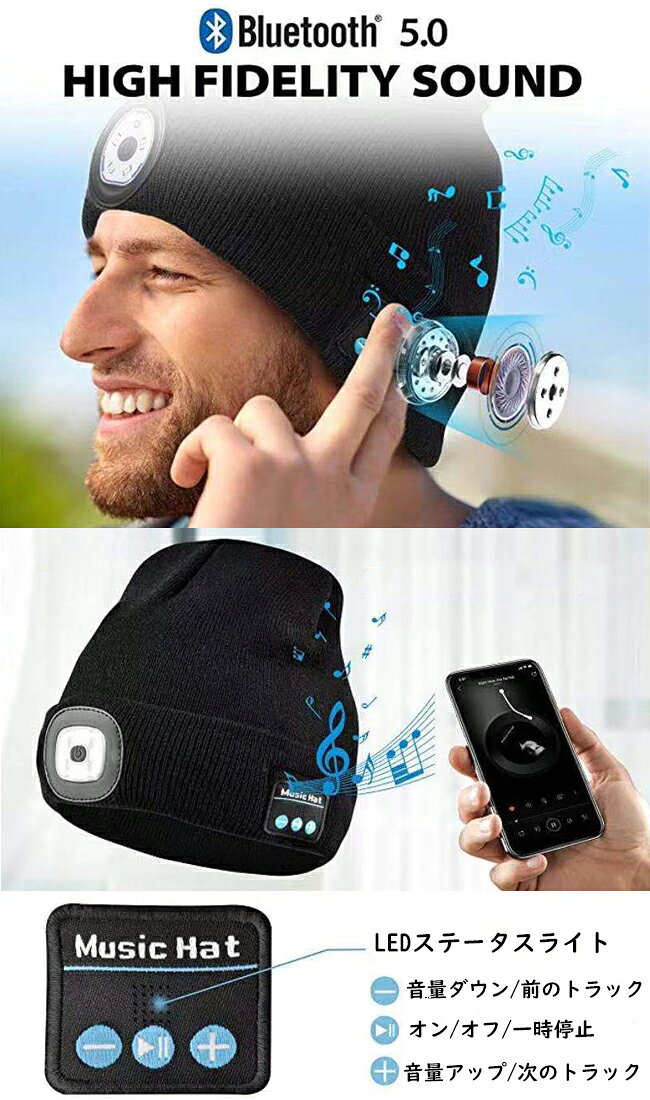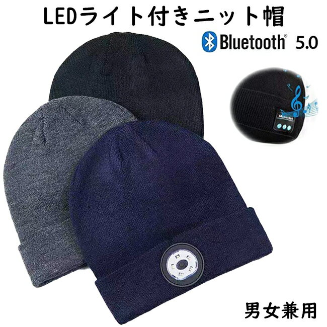 送料無料 LEDライト付きニット帽 ブルートゥース 音楽再生 電話 ワイヤレス通話 充電式 ブラック ネイビー グレー 防寒 ランニング ハイキング ウォーキング 贈り物 プレゼント